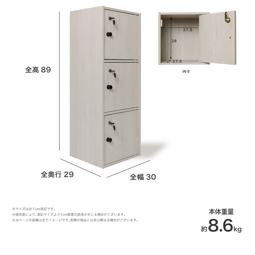 大切な書類やプライベートな物をしっかり守れる、鍵付き3ドアカラーボックスです。3つの扉で仕切られているので、書類・小物・日用品など用途ごとに分けて整理整頓ができます。すっきりとしたデザインでどんなお部屋にも馴染み、省スペースながら収納力はしっかり。安心と便利を兼ね備えた収納家具です。リビング・寝室・子供部屋・オフィスなど家庭からオフィスまでさまざまなシーンで活躍。シンプルで使いやすい収納を探している方におすすめです。組立簡単・軽い素材なので持ち運びがしやすいです。